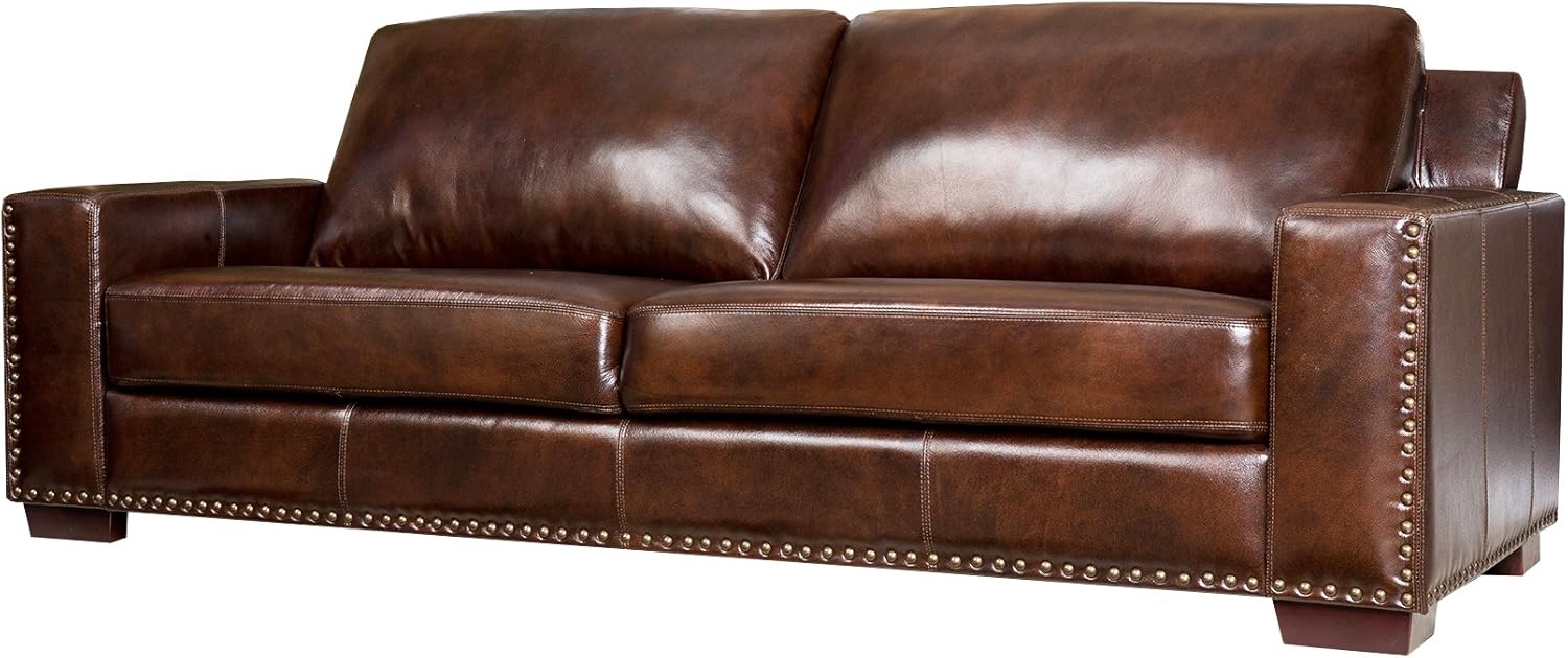 - Amazon Com Abbyson Revello Hand Rubbed Leather Sofa Brown Home Kitchen