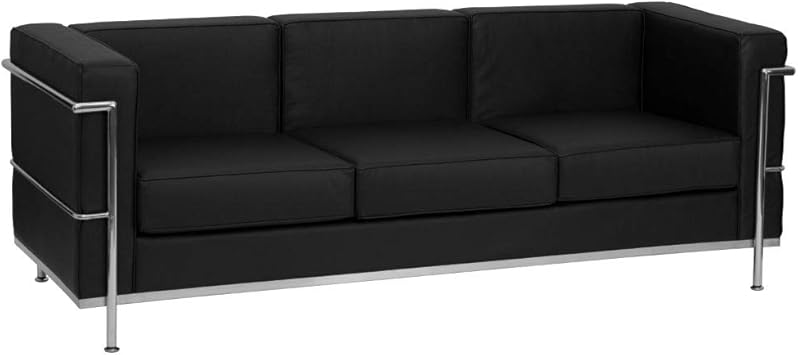 Amazon Com Flash Furniture Black Leather Sofa Furniture Decor Cushion Homemade Sofa Cover Ideas