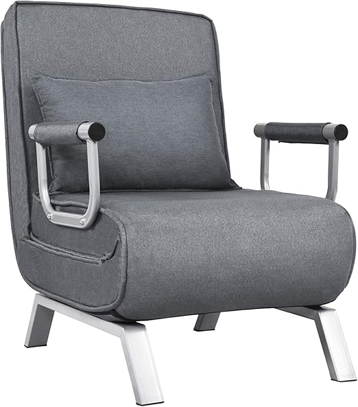 - Homcom Adjustable Folding Convertible Single Sleeper Sofa Bed Chair Lounge Couch With Pillow Grey Amazon Ca Home Kitchen