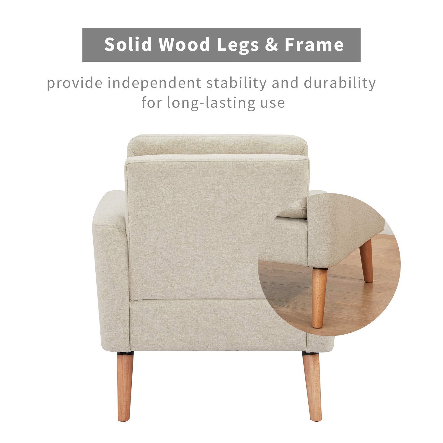 - Beige Modern Fabric Single Sofa With Solid Wood Legs And High Density Foam Bedroom Ruuf Accent Chair Armchair Comfy Upholstered Sofa Chair For Living Room Chairs