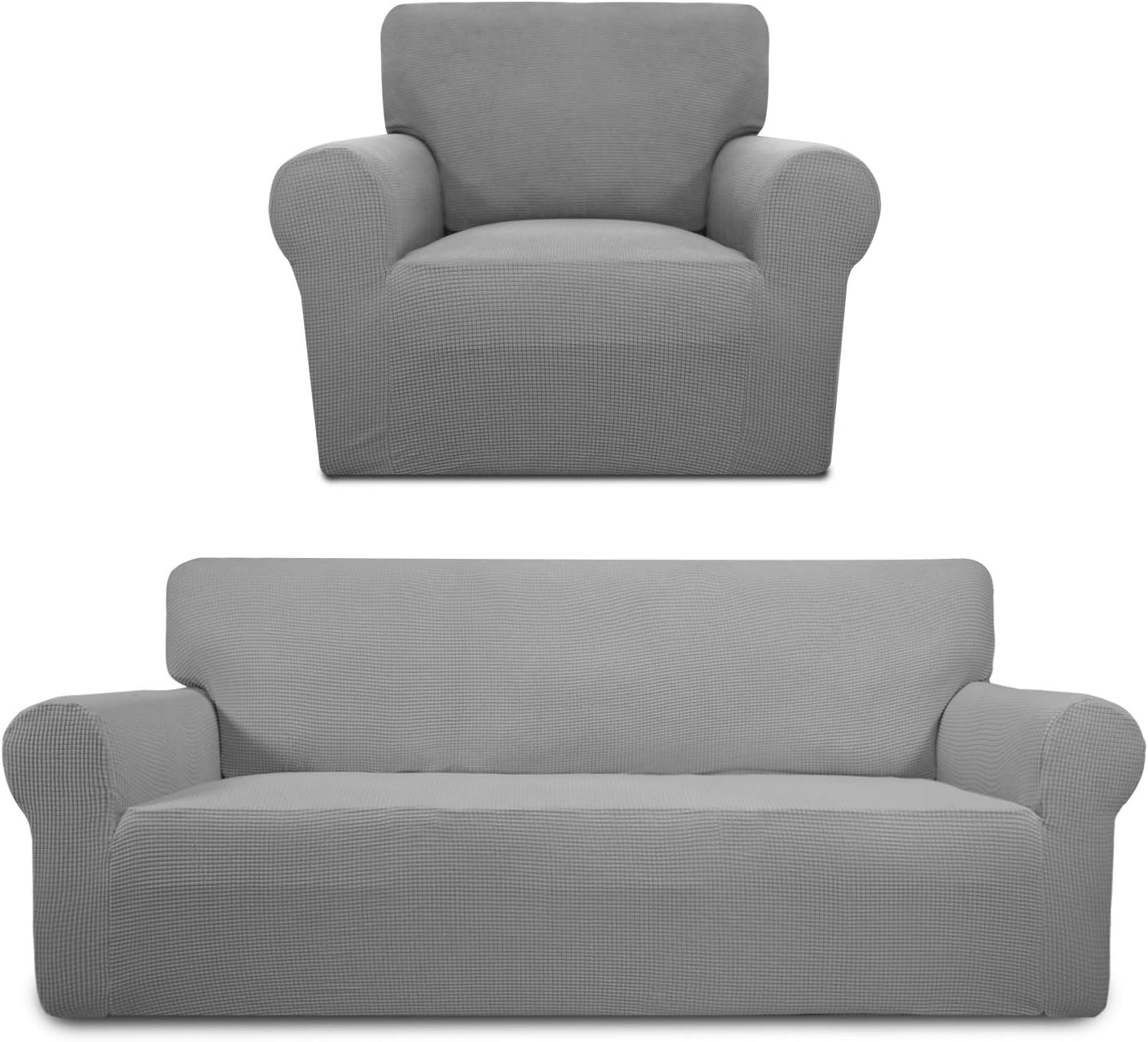 Amazon Com Purefit Chair Sofa Slipcover Bundles Jacquard Light Gray Sofa Slipcover Home Kitchen Leather Sofa Protector