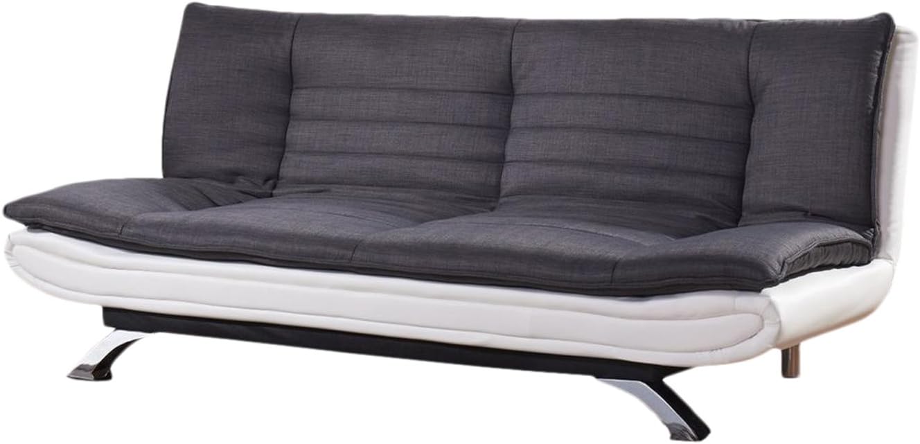 Comfy Living Fabric Sofa Bed 3 Seater With Faux Leather In Charcoal Grey White Amazon Co Uk Kitchen Home L Shaped Wooden Sofa Set Designs