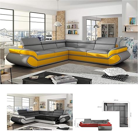 Bmf Genesis L Light Grey Yellow 4 Seater Extra Large Faux Leather L Shape Corner Sofa Comfort Right Facing 287cm X 287cm Amazon Co Uk Kitchen Home Orange Single Sofa