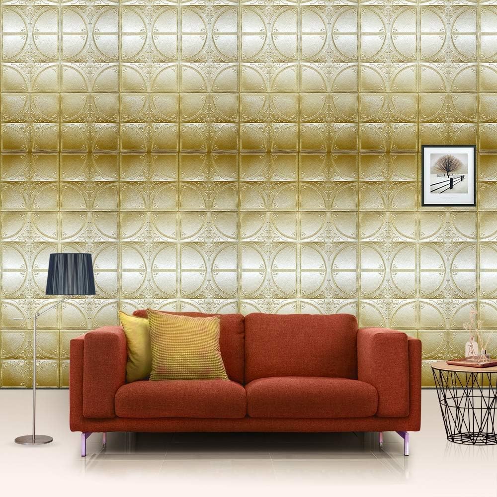 Yangman 3d Wall Panels That Pop Self Adhesive Foam Wall Sticker Diy Waterproof Wallpaper For Living Room Sofa Tv Background House Interiors Wall Decor 60x60cm Light Gold 10pack38 7sq Ft Amazon Co Uk Kitchen Home Juno Conrad Sofa Chair