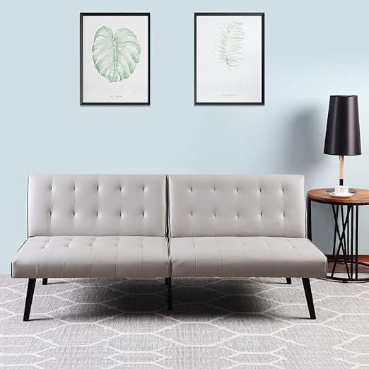 Amazon Com Futon Sofa Bed Bonzy Home Pu Leather Futon Couch Of 2 Seats Modern Style Futons Convertible Living Room Sofa For Small Space Light Grey Kitchen Dining Sofa Design By Wood
