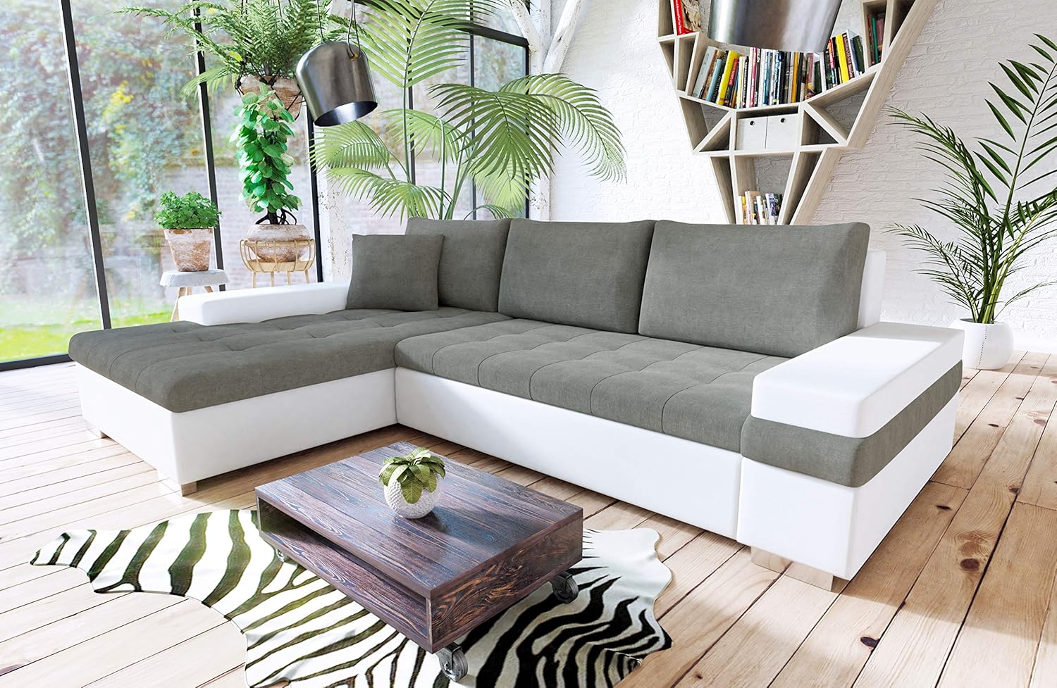 Honeypot Sofabed Bangkok Corner Large Storage Sofa Bed White Grey Black Left Hand White Grey Amazon Co Uk Kitchen Home Convertible Sectional Sofa Bed