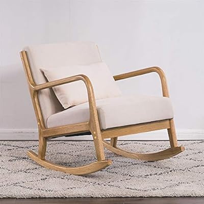 Solid Wood Rocking Chair Modern High Back Armchair Comfortable Rocker Fabric Padded Seat Wood Base Sofa Lazy Chair Sofa Rocking Chair Nap Chair Home Leisure Lounge Chair Beige Amazon Ae Wooden Sofa With Storage