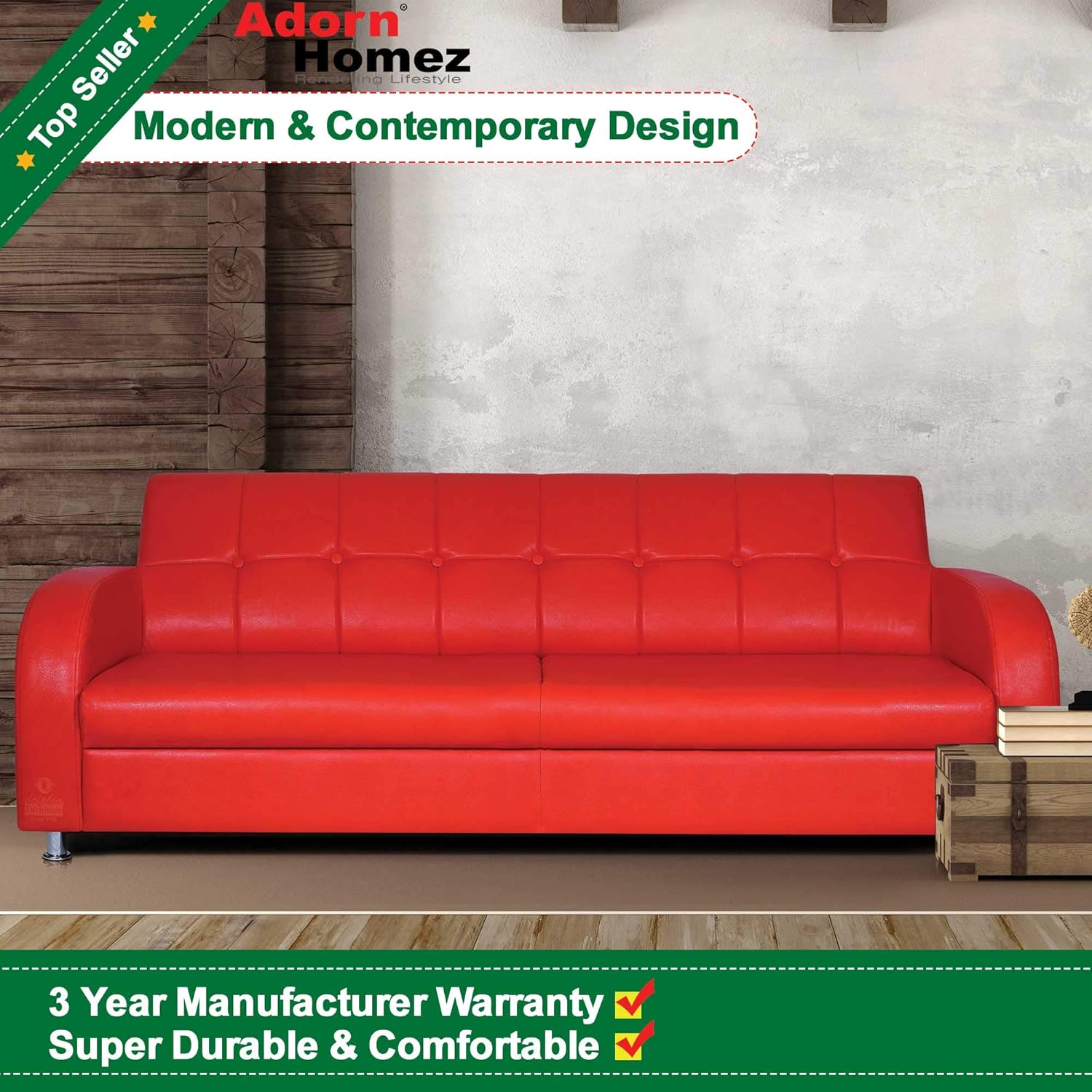 Adorn Homez Atlanta Leatherette 3 Seater Sofa For Home And Living Room Red Sofa Set For Hall Living Room Tv Room Guest Room Home Furniture Seater Sofas Trending Shape Sofa Sets With Ottoman Single Sofa Bed