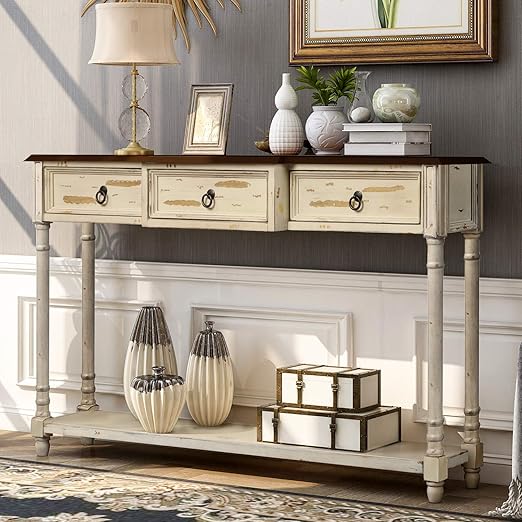 Amazon Com Console Table Sofa Table With 3 Drawers Luxurious And Exquisite Design For Entryway With Projecting Drawers And Long Shelf Antique Beige Kitchen Dining Mid Century Drop Leaf Sofa Table