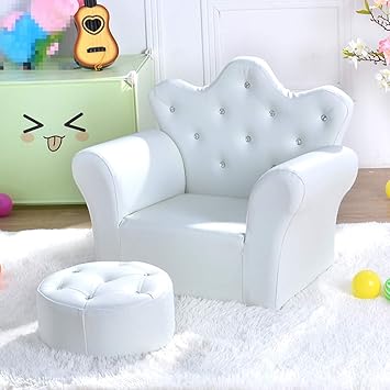 Amazon Com Myjzy Kids Sofa And Ottoman Crown Throne Children S Couch Set Pvc Leather Princess Sofa For Girls Soft Comfortable Toddler Sofa Chair White Furniture Decor Natuzzi Leather Sofa Recliner