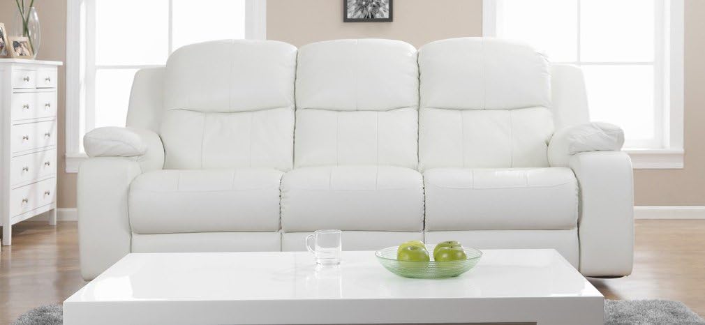 Montreal Blossom White Reclining 3 Seater Leather Sofa Amazon Co Uk Kitchen Home Modern Navy Blue Leather Sofa