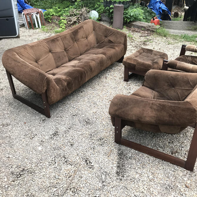 Percival Lafer Suede Leather Sofa Chairs Ottoman Vintage Mid Century Brazilian Modern 4 Set By Cabinmoderndc From Cabin Modernist Of Takoma Park Md Attic Boss Chair Sofa