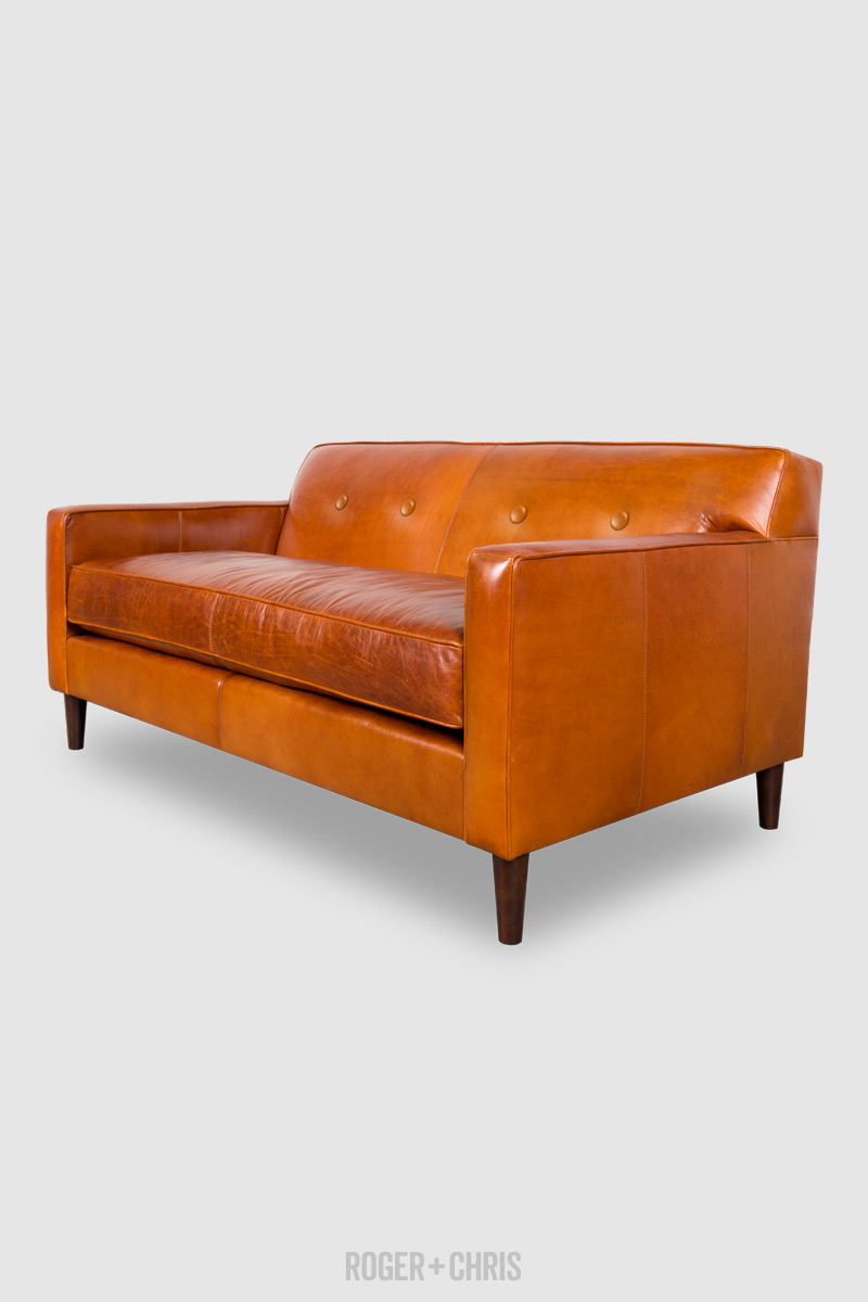 68 Sport Sofa In Echo Cognac Leather With Bench Cushion Roger Chris What Is A Sofa Table