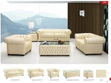Amazon Com Esf Modern 258 Full Ivory Italian Leather Sofa Coffee Table Furniture Decor Plain Wooden Sofa Set