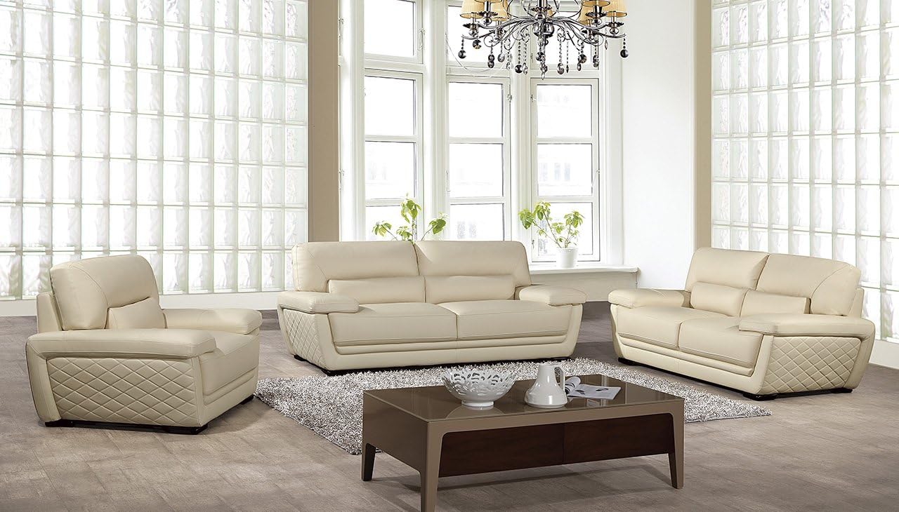Amazon Com American Eagle Furniture Emma Collection Modern 3 Piece Italian Leather Living Room Set With Sofa Loveseat And Chair Cream Furniture Decor Cushion Homemade Sofa Cover Ideas