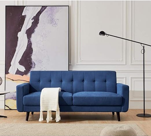 Amazon Com Mid Century Modern Small Space Living Room Sofa Fabric Upholstered Couch Hardwood Frame With Solid Wood Legs Office Hotel Recliner Apartment Couch Sofa Sleeper 2 Seaters Navy Blue Kitchen Dining Haru Single Sofa Bed