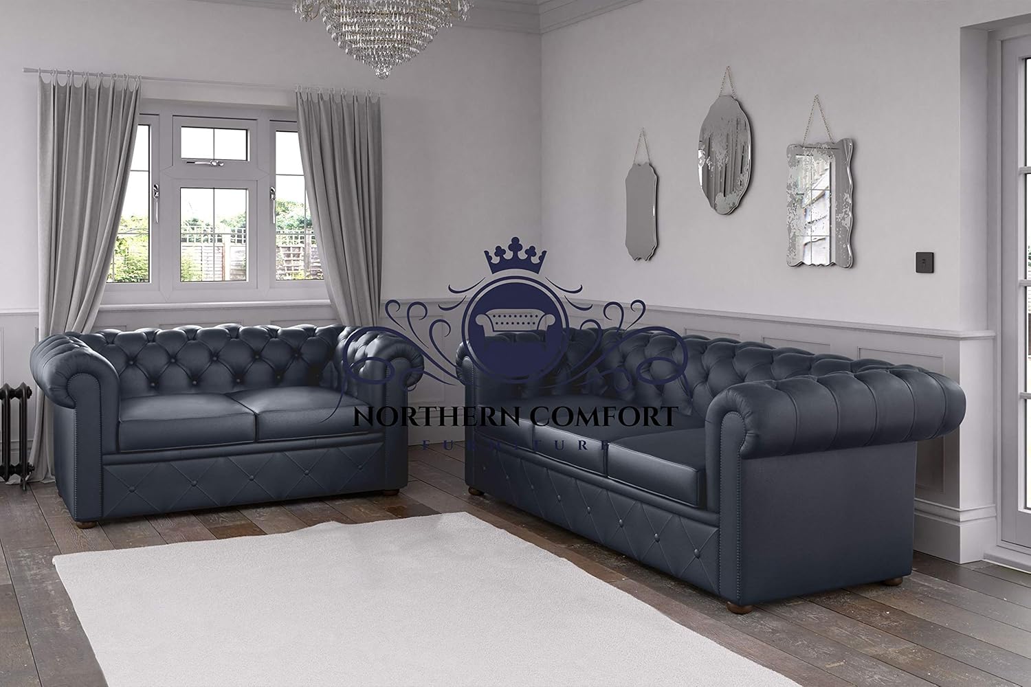 Chesterfield Sofa In Navy Bonded Leather Amazon Co Uk Handmade Flip Top Sofa Table With Stools