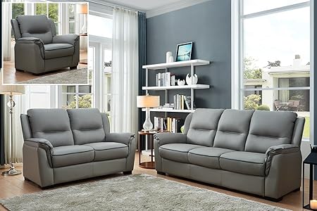 - Bromley Grey Leather 3 2 Seater Sofa Set Furniture Choice Wooden Sofa Antique,
