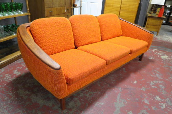 Vintage Mid Century Modern 3 Seat Teak Orange Sofa From Lincoln Antique Mall Of Chicago Il Attic Wicker Sofa Vintage For Sale