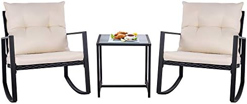Sunlei Outdoor 3 Piece Rocking Bistro Set Black Wicker Furniture Two Chairs With Glass Coffee Table Beige Cushion Buy Online At Best Price In Uae Amazon Ae Vintage Wrought Iron Sofa