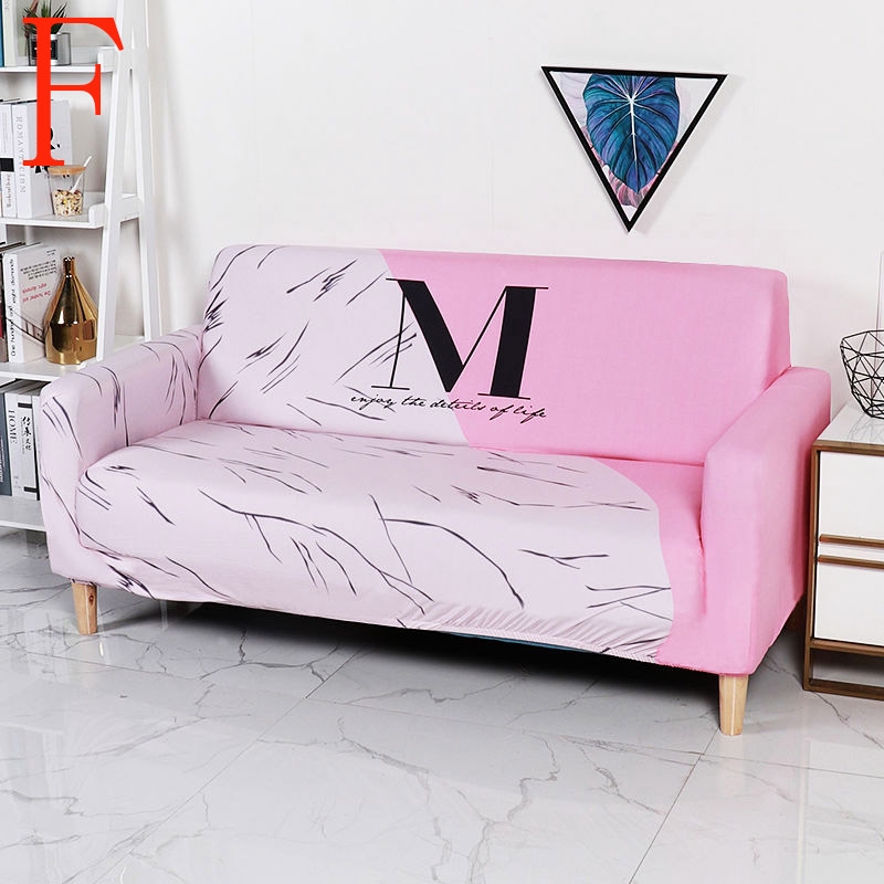 M Letter Printed White Pink Sofa Cover All Inclusive Couch Cover Love Seat Elastic Sofa Protector Shopee Malaysia Kitchen Table With Sofa Bench