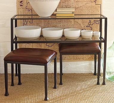 Leona 48 Glass Console Table Pottery Barn Green Leather Sofa For Sale