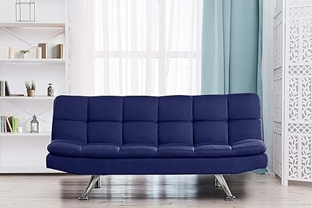 Comfy Living Fabric Padded 3 Seater Sofa Bed 3 With Chrome Legs Cube Design Blue Amazon Co Uk Kitchen Home Pull Out Double Bed Sofa