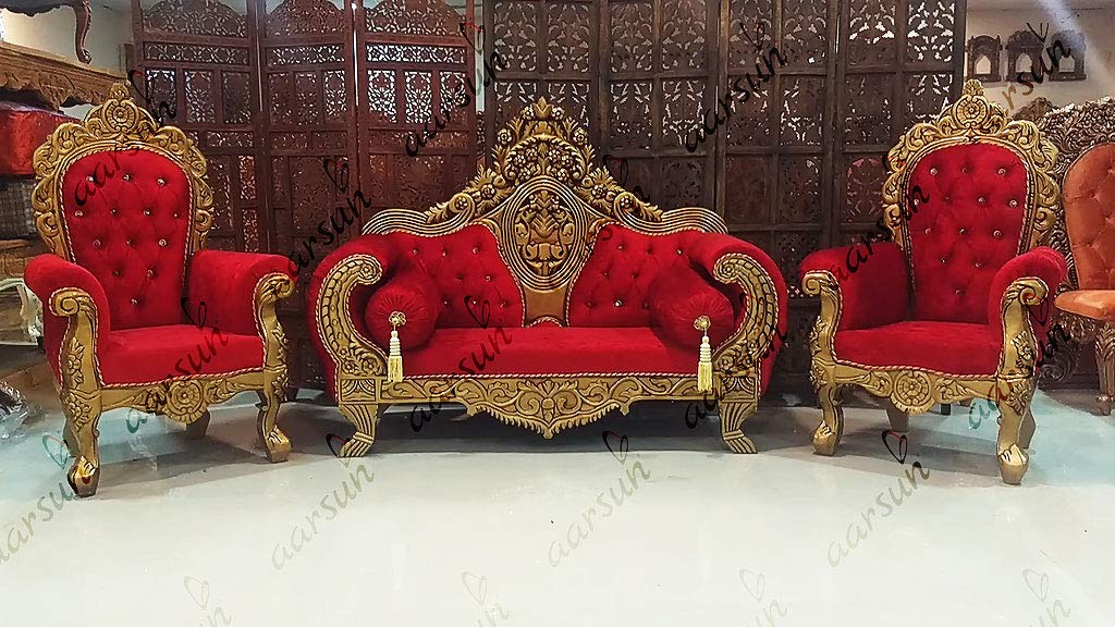 Aarsun Luxury Couch Victorian Style Sofa Set Of A Two Seater Couch And 2 Single Royal Chairs Red And Gold Amazon In Home Kitchen Tan Leather Sofa Vintage