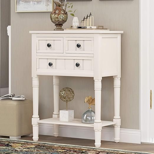 Amazon Com Hall Table Narrow Console Table Slim Sofa Table With Three Storage Drawers And Bottom Shelf For Living Room Easy Assembly Hall Stand Several Colors For Choice Ivory White Kitchen Dining How To Get A Sofa Through A Tight Space