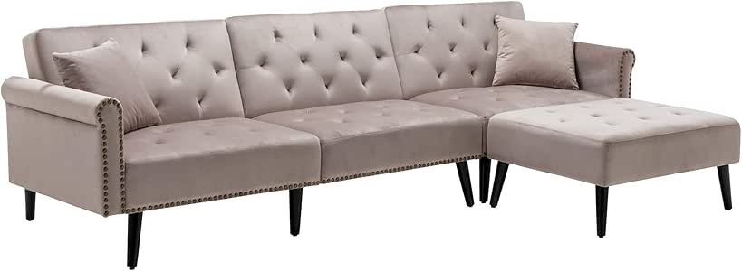 Amazon Com Homefun Sectional Sleeper Sofa Bed Convertible Sectional Sofa Couch With Reversible Chaise For Living Room Small Rooms Grey Kitchen Dining Mini Sofa For Small Space