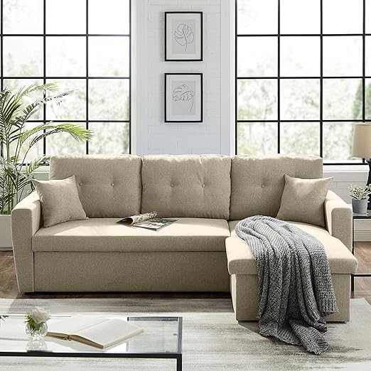 Amazon Com 3 Seater Sofa Bed With Storage Tribesigns 86 6 Convertible Sectional Sofa Couch Modern Linen Fabric L Shape Couch For Small Space Light Yellow Kitchen Dining Godrej Wooden Sofa
