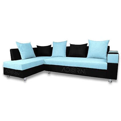 Adorn India Adillac 5 Seater Corner Sofa Left Side Handle Light Blue Black Amazon In Home Kitchen Old Sofa Design