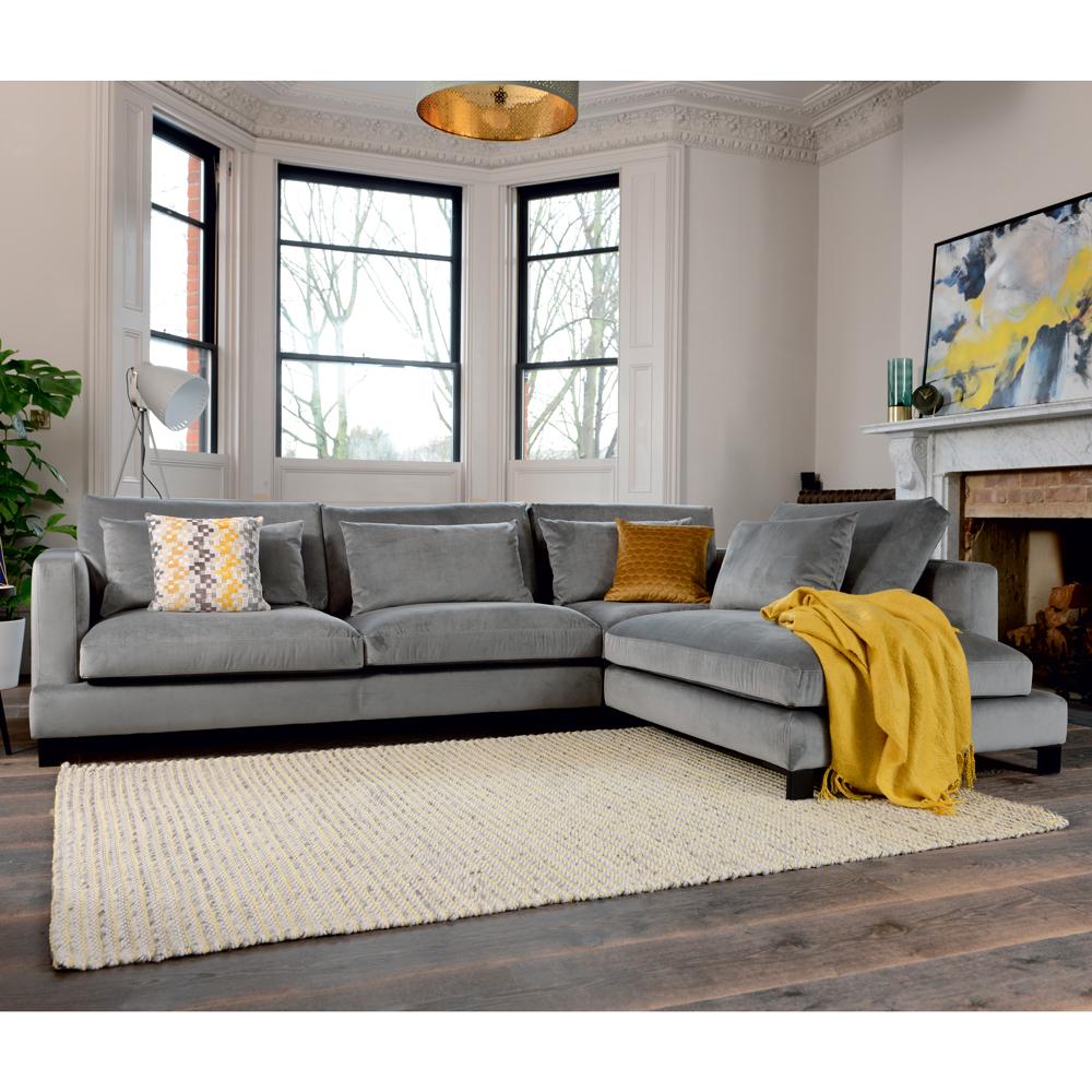 Lugano Left Hand Facing Arm Corner Sofa Alba Velvet Grey Dwell Living Room Love Sofa Chair