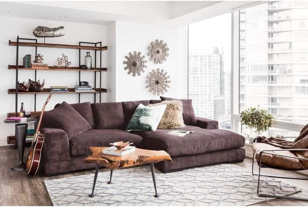 Amazon Com Modern Style Sectional Sofa Corduroy Fabric Upholstery Contemporary Design 2 Piece L Shaped Chaise Lounge Modular Couch Brown Removable Cushions 106 Wide Living Room Furniture Home Decor Kitchen Metal Industrial Sofa Table
