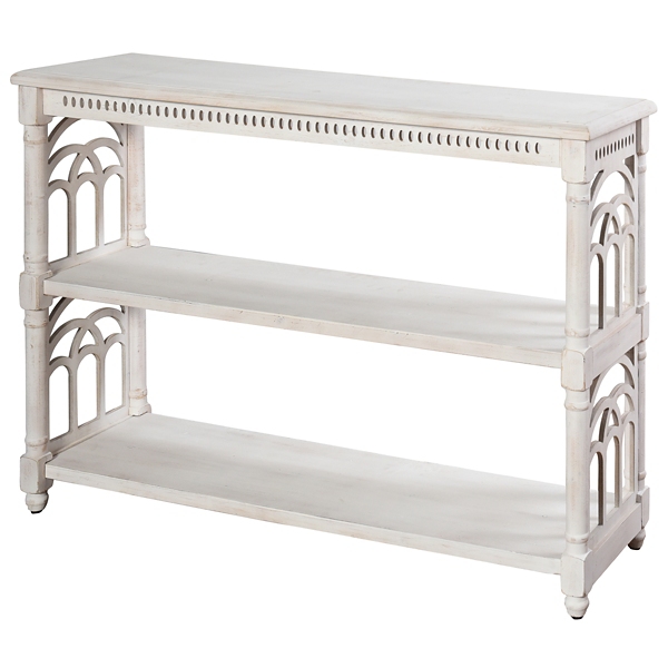 White Open Shelf Cathedral Ends Console Table Kirklands Vintage Sofa Harris Tweed