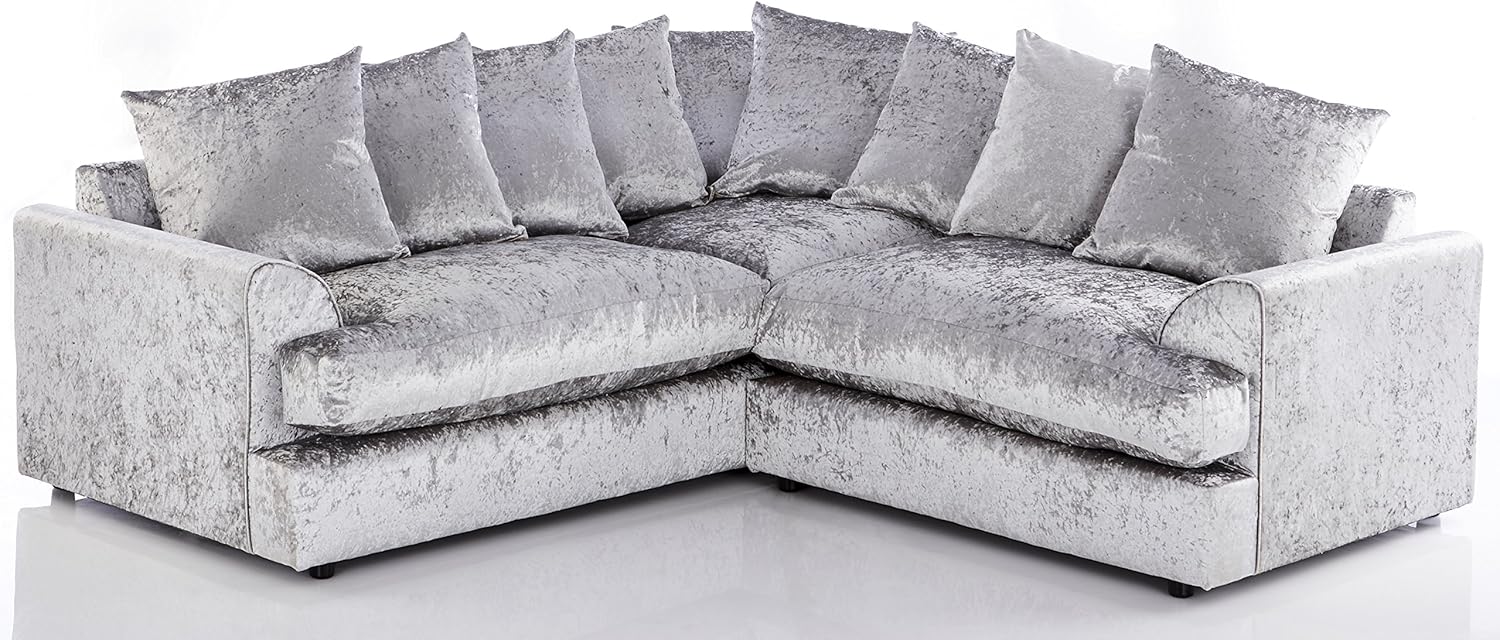 - New Georgia Crushed Velvet Space Saving Corner Sofa Silver Corner Amazon Co Uk Kitchen Home