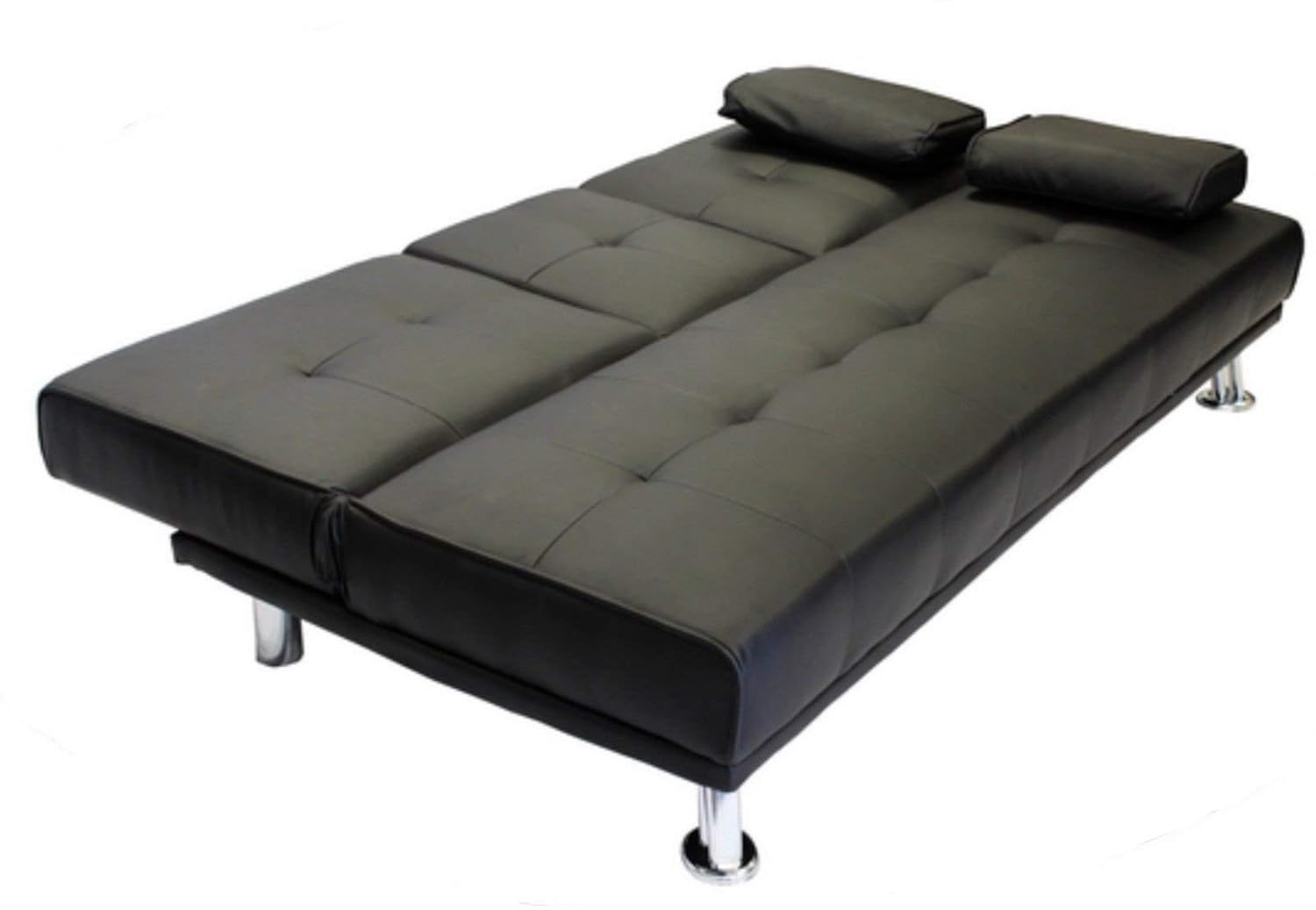 Black Faux Leather Sofa Bed Click Clack Double Settee 2 To 3 Seater Modern Couch With Cup Holder Table Two Pillows And Chrome Feet Living Room Space Saving Sleeper Furniture Sofas Couches Yoke Sofa Table
