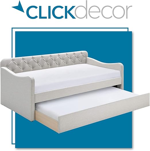 Amazon Com Click Decor Carmina Upholstered Daybed Sofa With Roll Out Trundle Guest Bed Twin Size Frame Diamond Tufted Backrest With Plush Padding Dark Gray Single Beige Furniture Decor Grey Tufted Leather Sofa