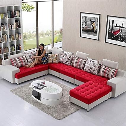 - Techno U Shape Sofa Set For Living Room 9 Seater Sofa Set For Living Room Red And White Amazon In Home Kitchen