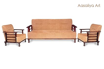 - Aashirwad Furniture 3 Seater Wooden Sofa Set Multicolour Amazon In Electronics